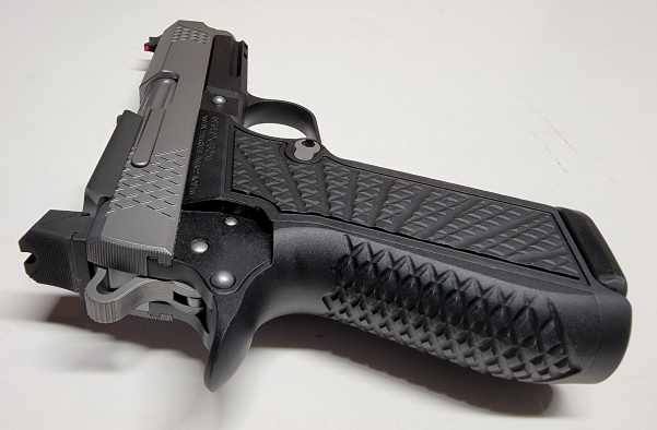 Unique X-TAC rear & front cocking serration treatment on slide